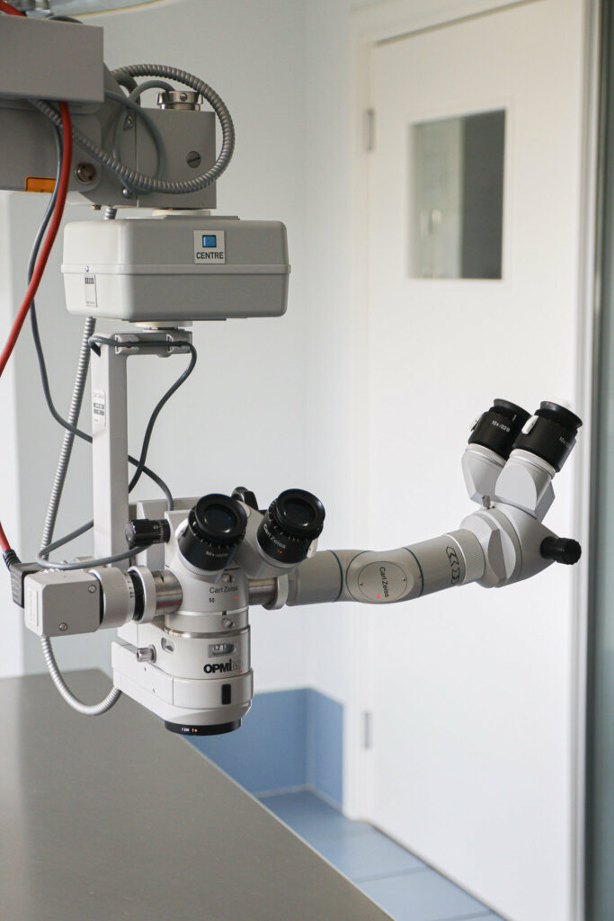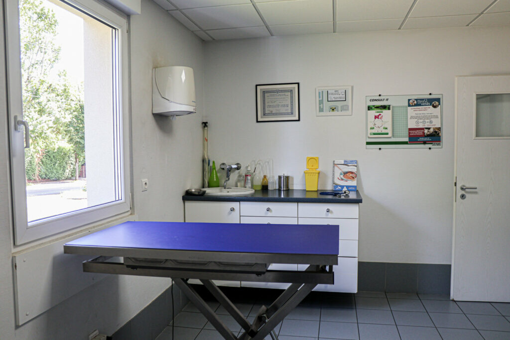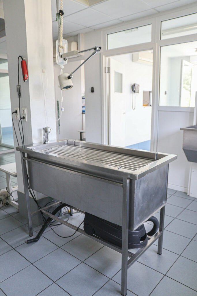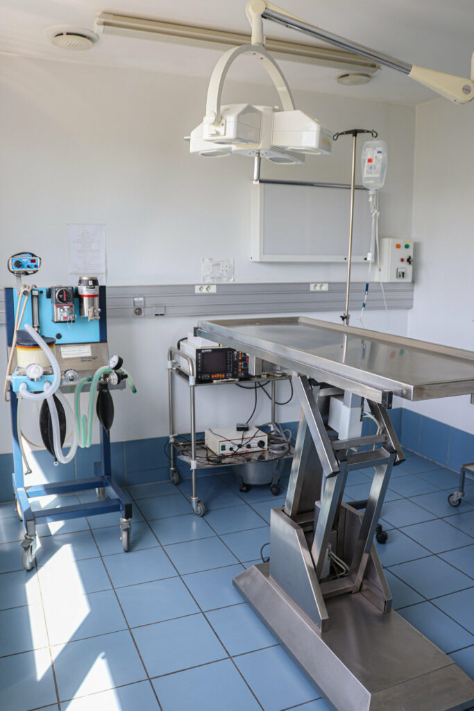 Nous disposons d’une salle de préparation, une salle d’opérations généralistes , une salle d’opérations ophtalmologiques dotée d’un microscope opératoire et d’un local de réveil panoramique vitré où nous pouvons observer le réveil des animaux opérés.
