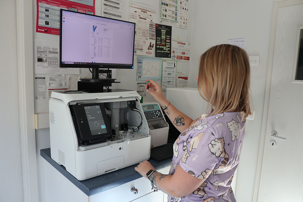 • Les dosages hormonaux qui permettent non seulement de détecter des troubles de la thyroïde, des glandes surrénales, mais aussi de détecter au travers d’un dosage de la progestérone le moment optimal pour l’insémination d’une chienne en chaleur.